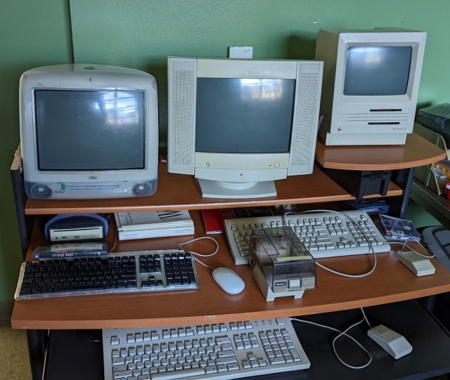 - iMac G3 600 (2001). A late model of the original curvy CRT-based iMac (1998) with a slot loading CD which, like most of the others, no longer ejects disks well enough to be usable. After replacing the hard drive and speakers everything else works fine, so it’s configured with an external firewire DVD drive. Triple boots Mac OS 9, OS X 10.0 and OS X 10.4 to allow experimentation with a range of Mac environments before, during, and after Apple’s transition to a modern operating system.